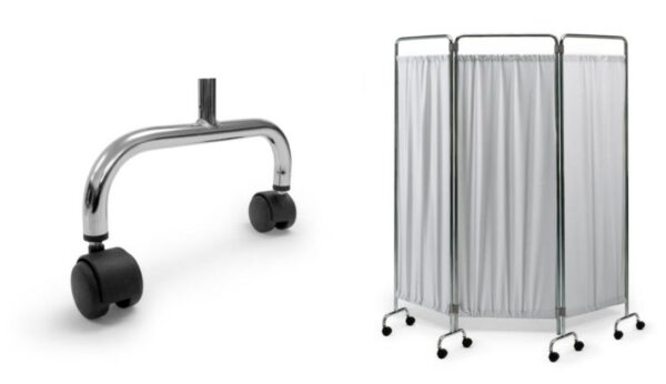 Optioneel kan het bedscherm worden uitgevoerd met wielen of met brede poten.