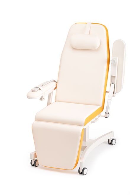 De solide gestoffeerde armleuning maakt het mogelijk om voor elke lichaamsbouw de meest geschikte en rustgevende arm positie te bereiken. Het kan in hoogte worden aangepast en de toegang wordt vergemakkelijkt door de armleuning eenvoudig omhoog te kantelen. Het zachte armleuningkussen bestaat uit meerdere lagen en is volledig afgedicht tegen vloeistoffen. Bovendien zorgt dit voor een verbeterd comfort voor de patiënt. Optioneel kan de afstand tussen de armleuningen ook worden aangepast door deze volledig te draaien.