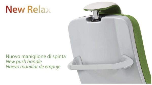 De zitting, rugleuning en beensteun zijn gemaakt van polyurethaanschuim en bekleed met kunstleer brandwerende klasse 1 / IM, wasbaar en geschikt voor desinfectie. De rugleuning is voorzien van duwbeugel en lendensteun. De wegklapbare armleuningen zijn van een zacht integrale polyurethaan coating en in hoogte verstelbaar in 6 standen. Het stalen frame is voorzien van poedercoating.
